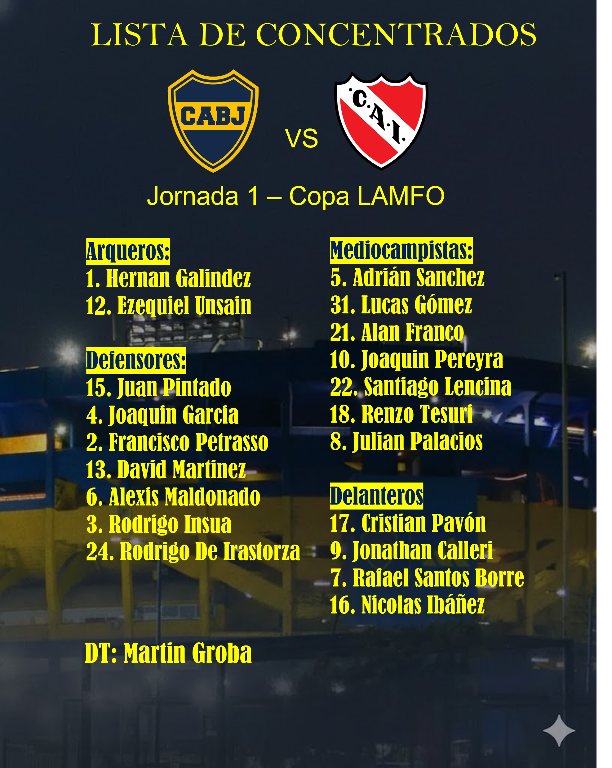 | LISTA DE CONCENTRADOS J1 - Copa LAMFO| - Boca Juniors