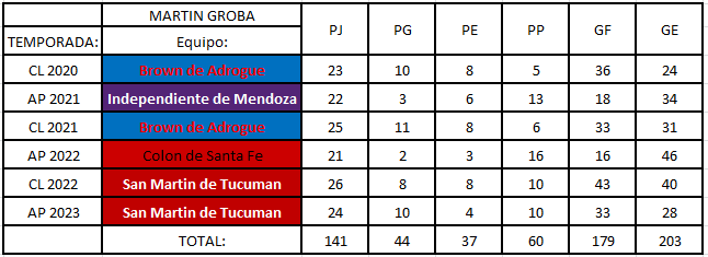 Luego de varias charlas, el ciruja busca la renovacion de Martin Groba. Cumpliendo ya su segunda temporada en el club, el DT buscaria una salida del equipo Tucumano para afrontar nuevos retos. PERO ATENCION, Segun el circulo interno de Groba, hay serias chances de que el DT pueda seguir una temporada mas al mando del club en caso de que ninguna oferta lo atraiga.